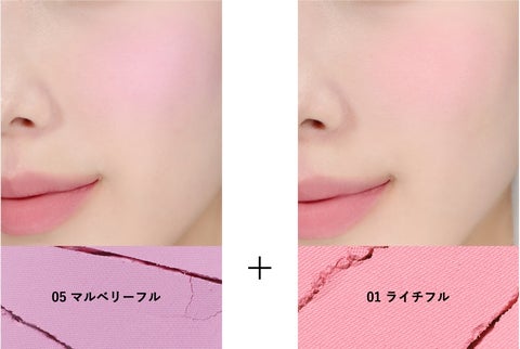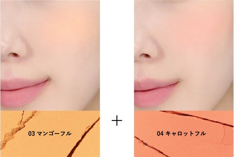 - 「チアフルブラッシャー」は高発色パウダーで、見たままの色味が頬に広がり、ジューシーフェイスが叶う