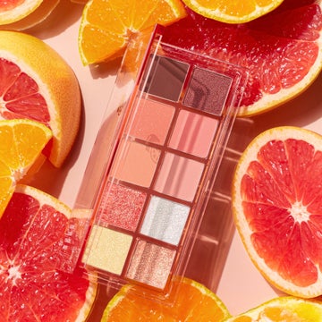 - 「サンリットシトラス」はイエローベースの方におすすめのオレンジシャドウパレット