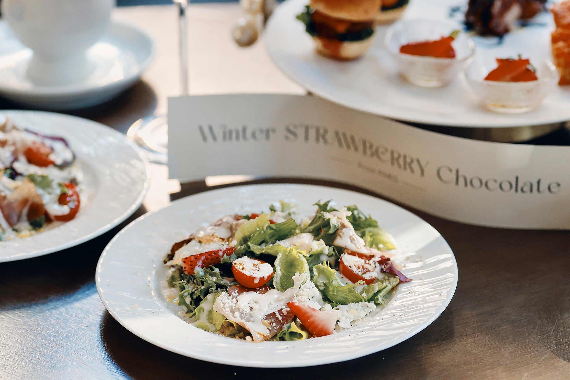 セイボリーも充実しており、ミニバーガーやブラータチーズと苺のカプレーゼなど、本格的な味わいをお楽しみいただけます。