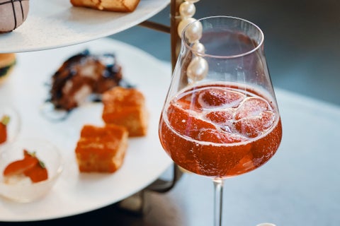 - フレッシュな苺をふんだんに使用したシャンパンカクテルもオプションで楽しめる