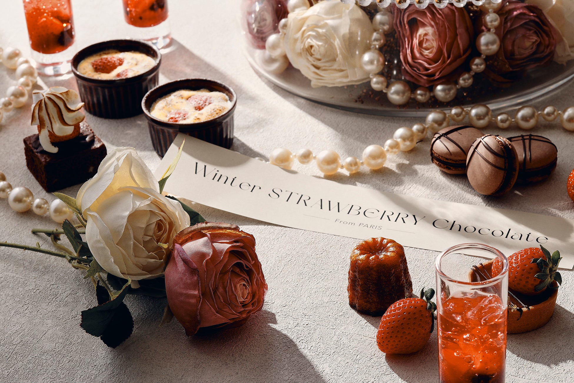 フランスの味を楽しめるカヌレやショコラマカロン、苺のフルーツグラタンなどがお楽しみいただけます。