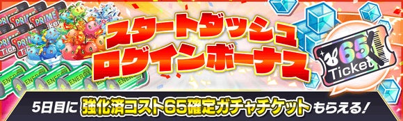 強化済コスト65確定ガチャチケットがもらえる!スタートダッシュログインボーナス開催!