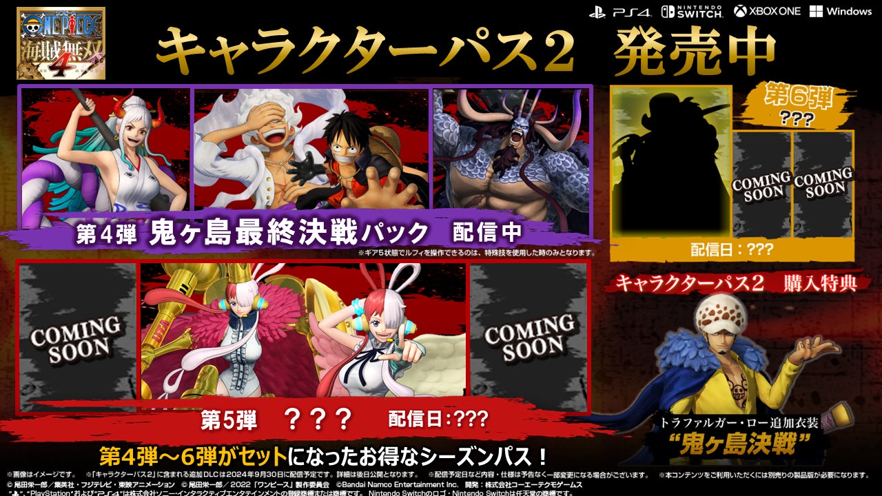 株式会社バンダイナムコエンターテインメントは、『ONE PIECE 海賊無双4』の新しいDLC「キャラクターパック第5弾」でウターFILM REDの配信を発表しました。