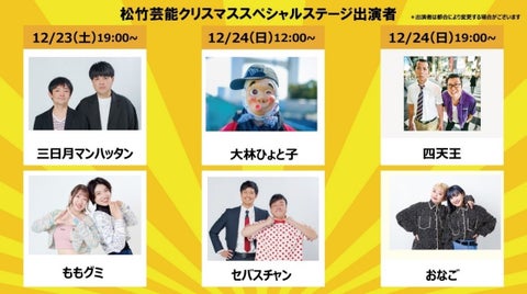 • 2023年12月23日(土)と12月24日(日)の2日間、浅草花やしきで「松竹芸能クリスマススペシャルステージ」が開催される