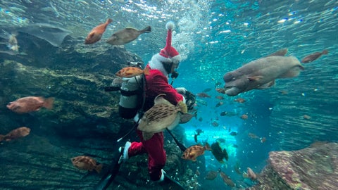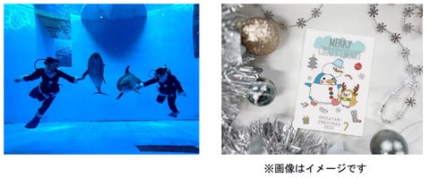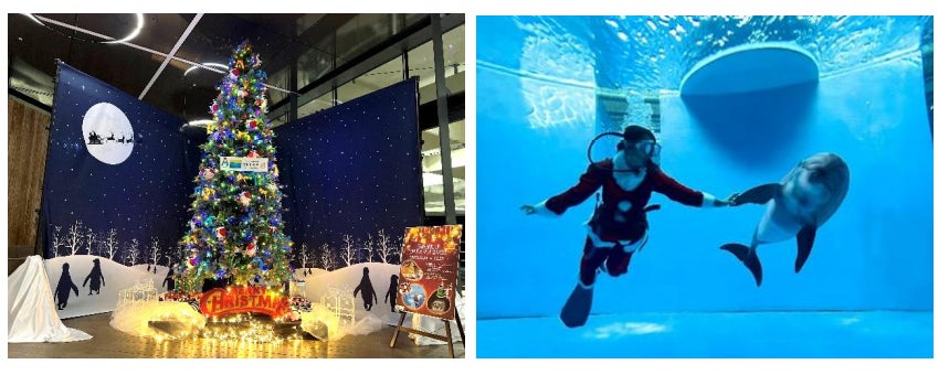 館内は華やかなクリスマス装飾で彩られ、人気の水中ドルフィンパフォーマンス「Art of Dolphin」や「舞鰯シャイニリュージョン」のクリスマスバージョンなど、クリスマス限定のイベントが楽しめます。