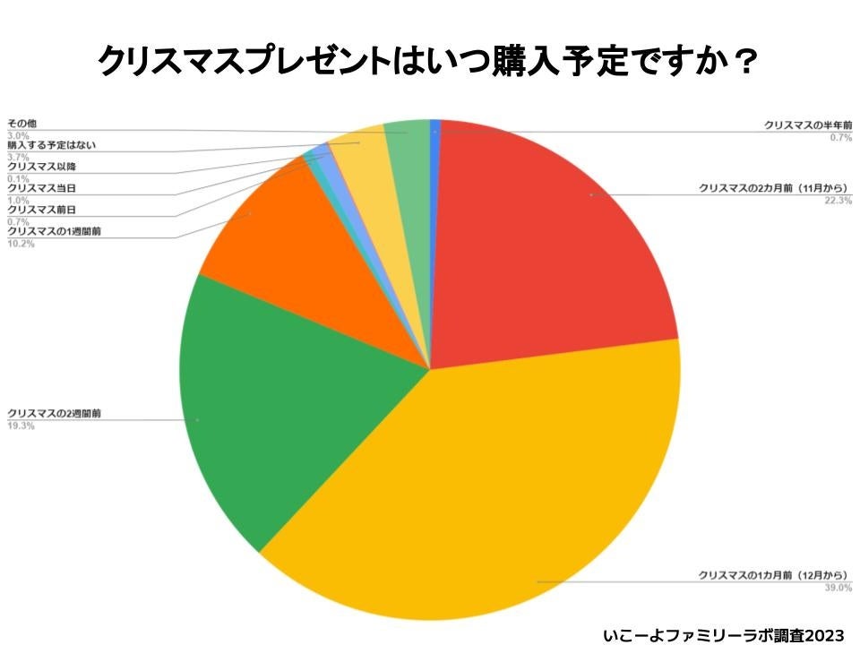 プレゼントの予算は5,000円から10,000円が最も一般的であり、約70%の親が12月に入ってから購入していることがわかりました。