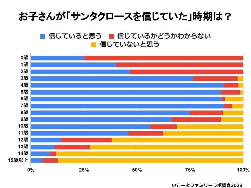子供たちは11歳までにはサンタクロースを信じることが多く、親は3歳から11歳の間にプレゼントを購入することが多いようです。