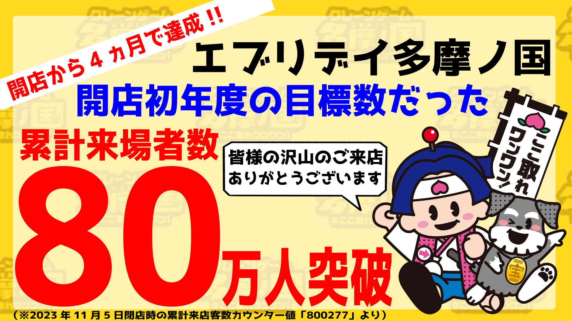 この店舗は都内最大規模のクレーンゲーム専門施設であり、累計来場者数は80万人を超えました。