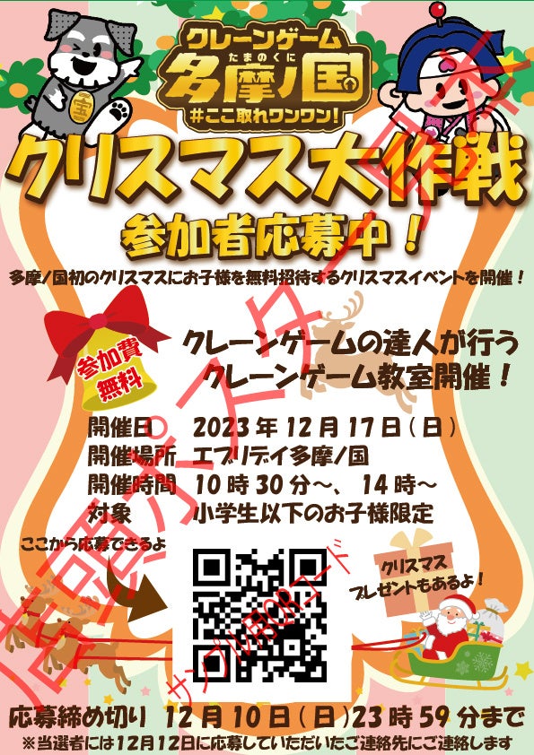 - 12月には無料のクリスマスクレーンゲーム教室イベントを開催