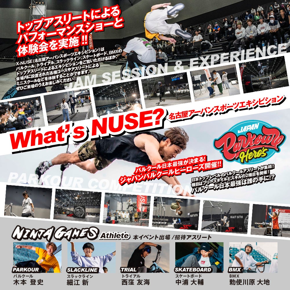 NUSE、NINJA GAMES SHOW、アーバンスポーツ体験会、ジャパンパルクールヒーローズ