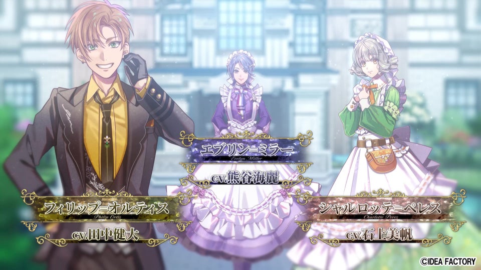キャラクターデザインは清白かりん氏による英国風衣装を身にまとった鮮やかで繊細なキャラクターたちが担当しています。