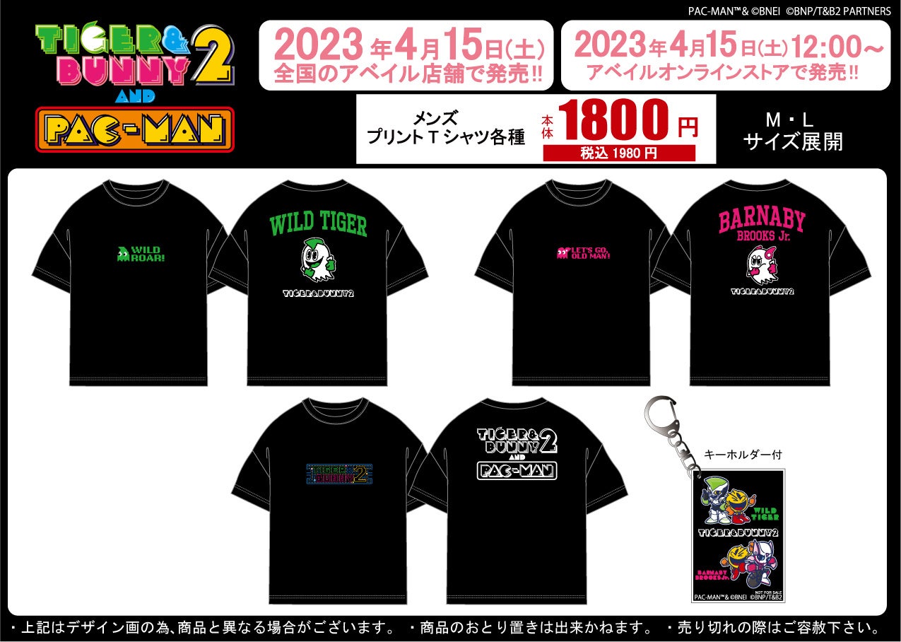 アベイルで『TIGER & BUNNY 2 and PAC-MAN』コラボTシャツが発売!パックマンのビッグサイズなソフビも登場します。