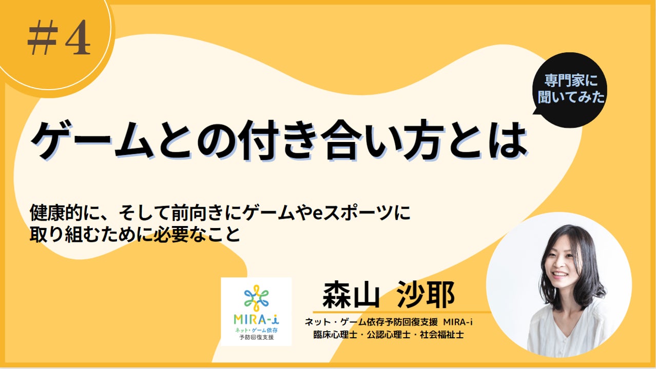 そこで、NASEF JAPANはネット・ゲーム依存専門の心理師である森山沙耶氏を講師に迎え、ゲーム依存に対する知識や向き合い方、予防方法などを解説しています。