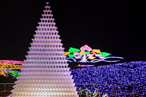 公園の広大なエリアには、65万球のLED電球やスポット照明を使用して幻想的な光の世界が広がっています。