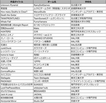 - ゲームクリエイター甲子園: 学生向けのインディーゲームコンテスト