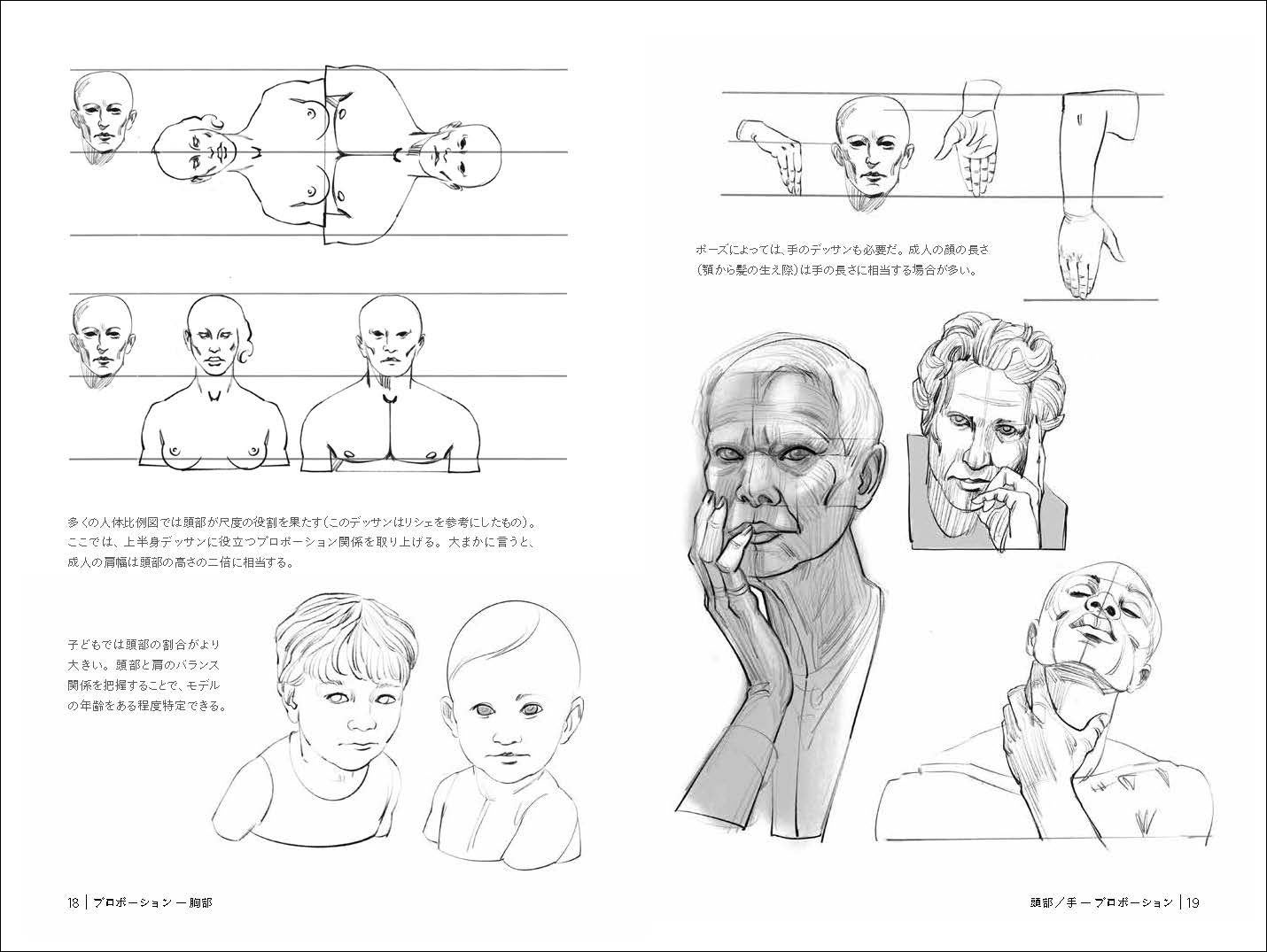 著者のメソッドでは、頭部のバランスやプロポーションを重視し、全体を捉えた後にディテールを描くように指導しています。