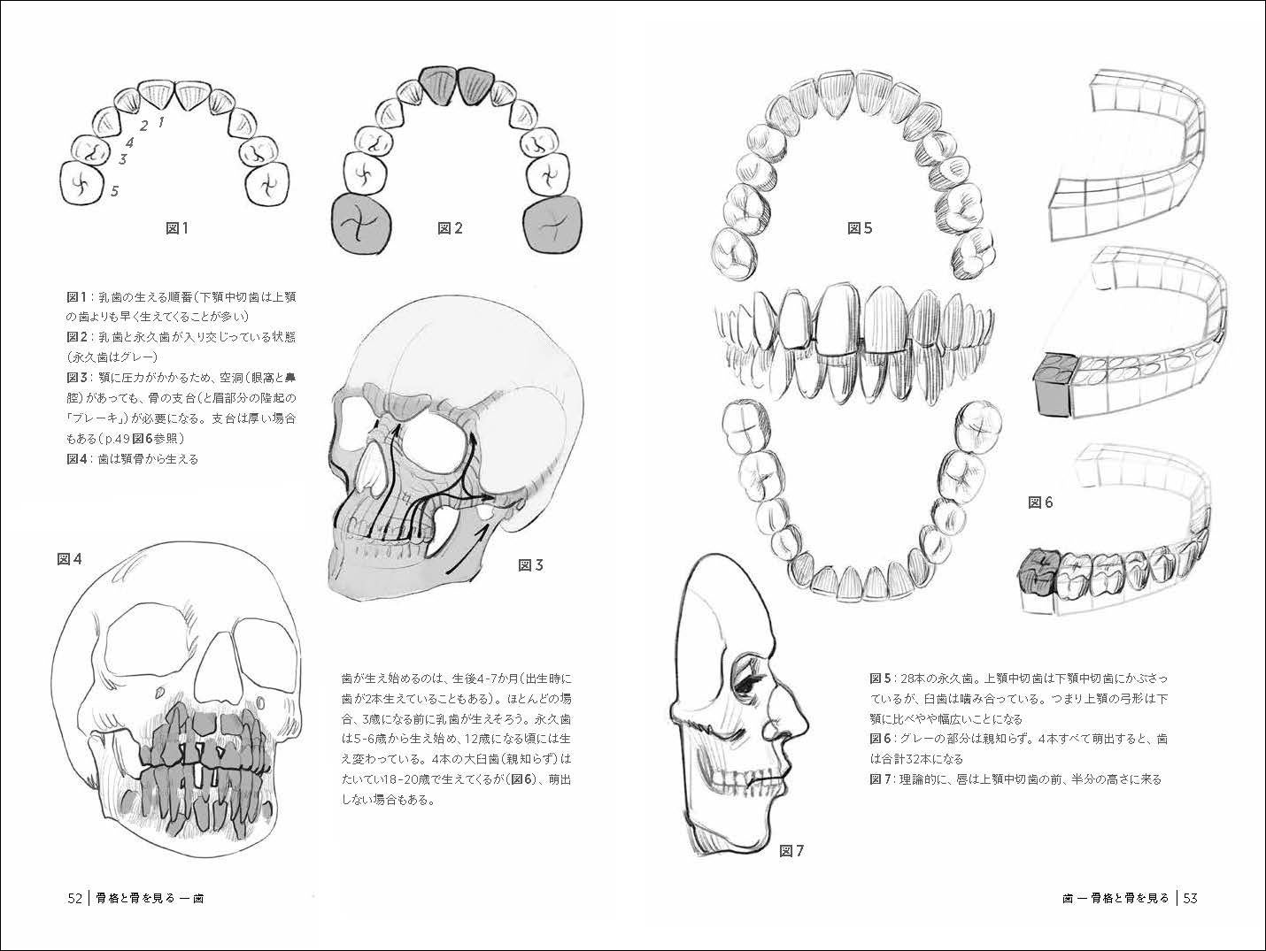 さらに、頭部の骨格や筋肉のつき方も解説されています。