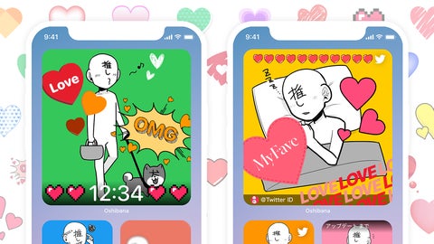 ハートや絵文字、クリエイターのスタンプなど、約7,000種類のスタンプを使ってウィジェットを自分好みにカスタマイズできます。