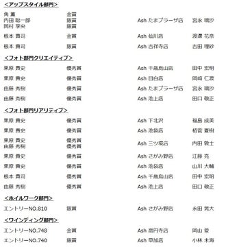 - ウィッグカット部門やホイルワーク部門など複数の部門がある