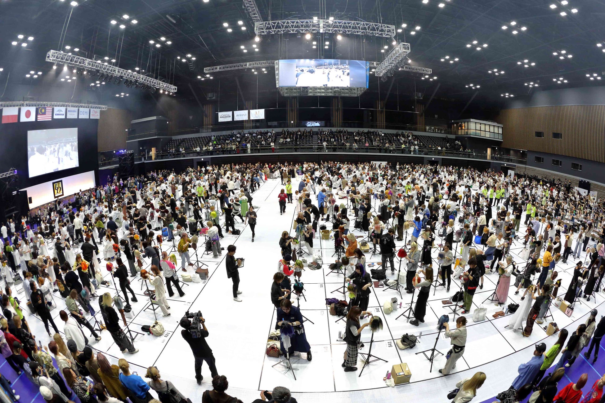 今回は横浜武道館で開催され、ウィッグカット部門やホイルワーク部門など、様々な部門で579名が競いました。