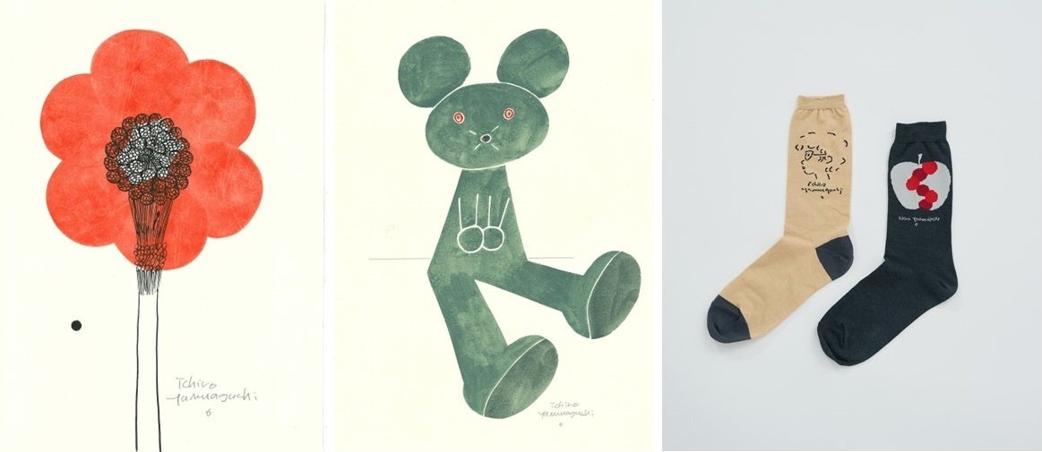 - 雑貨:山口一郎デザインのマスキングテープや靴下なども楽しめる