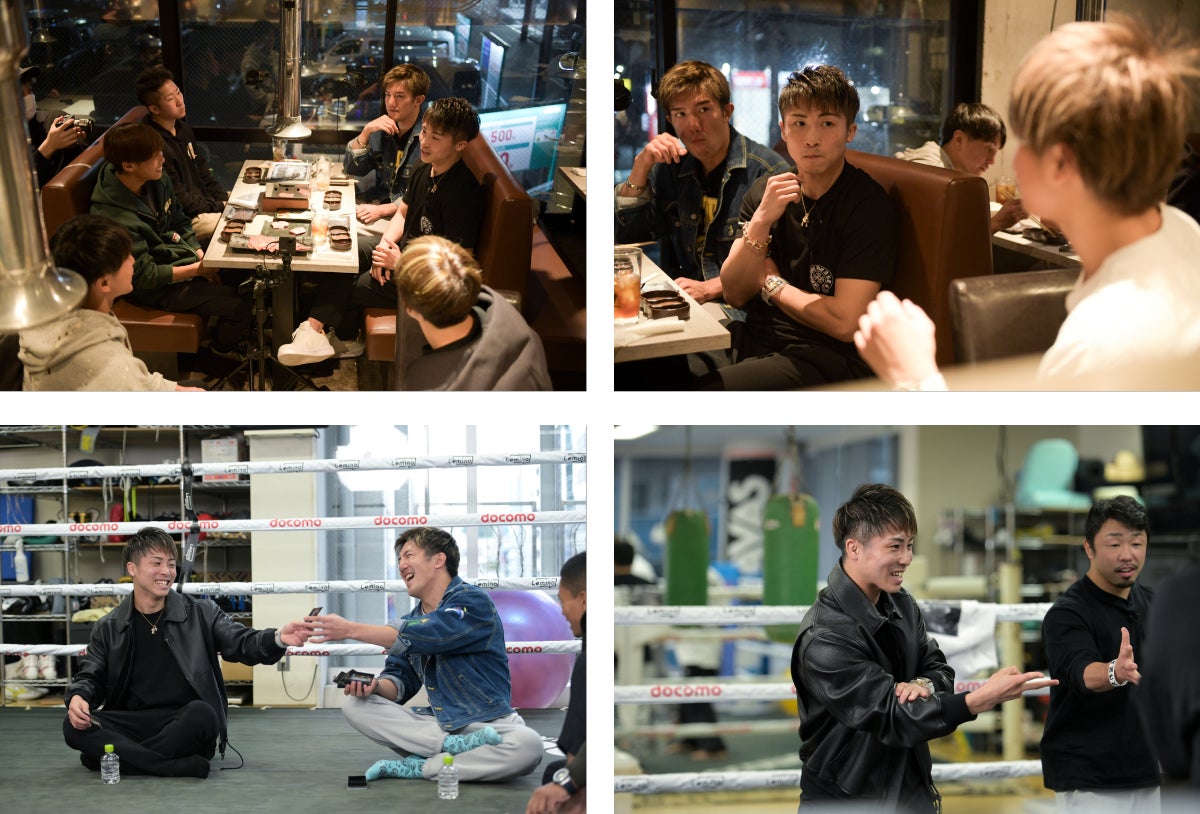 井上選手と大橋ボクシングジムの八重樫東トレーナーをはじめとする同門選手たちが集まり、リング上でのプライベートトークを展開します。