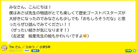 『歴史ゴーストバスターズ』シリーズは、子どもたちが好きな要素が詰まった作品で、読者の熱量も非常に高いです。