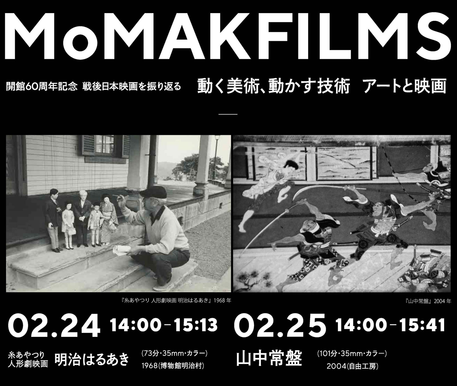 - 2月の特集では、『糸あやつり 人形劇映画 明治はるあき』と『山中常盤』を上映