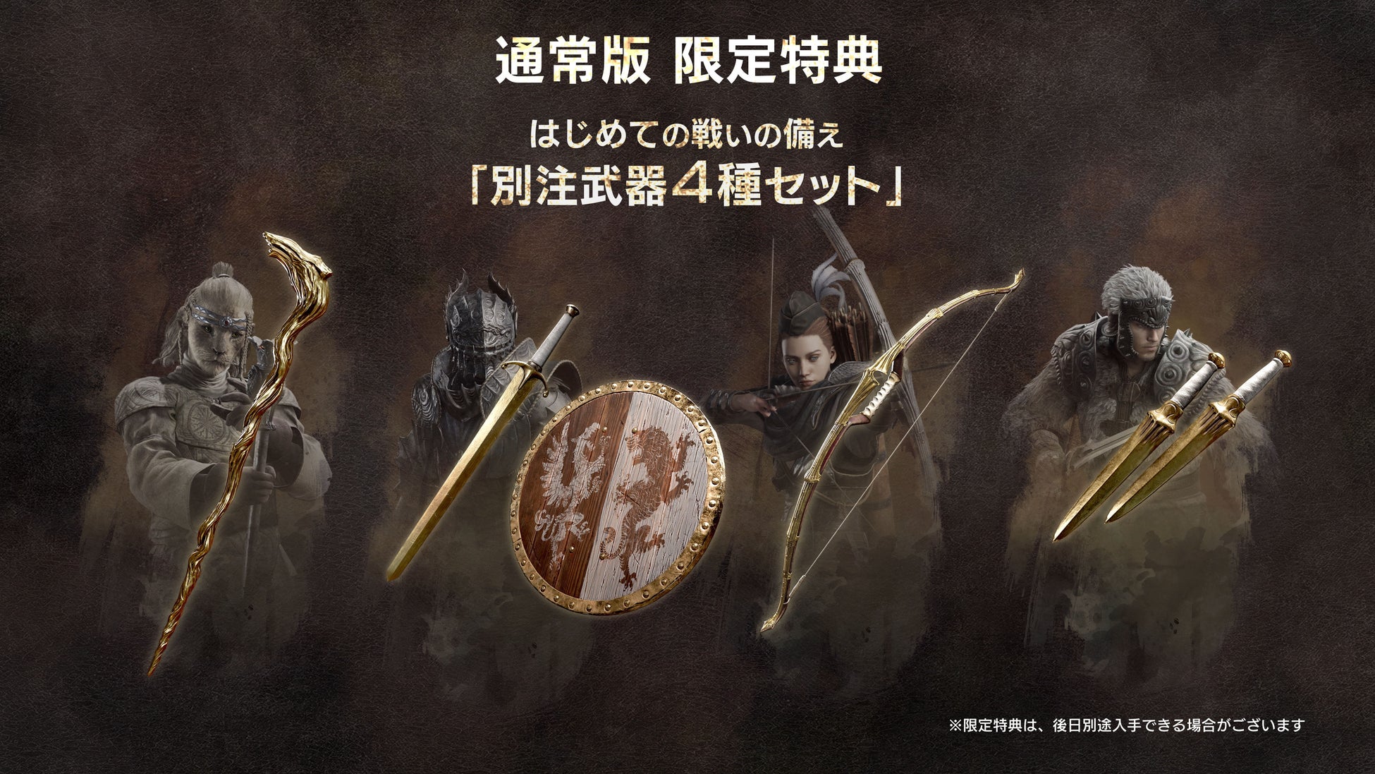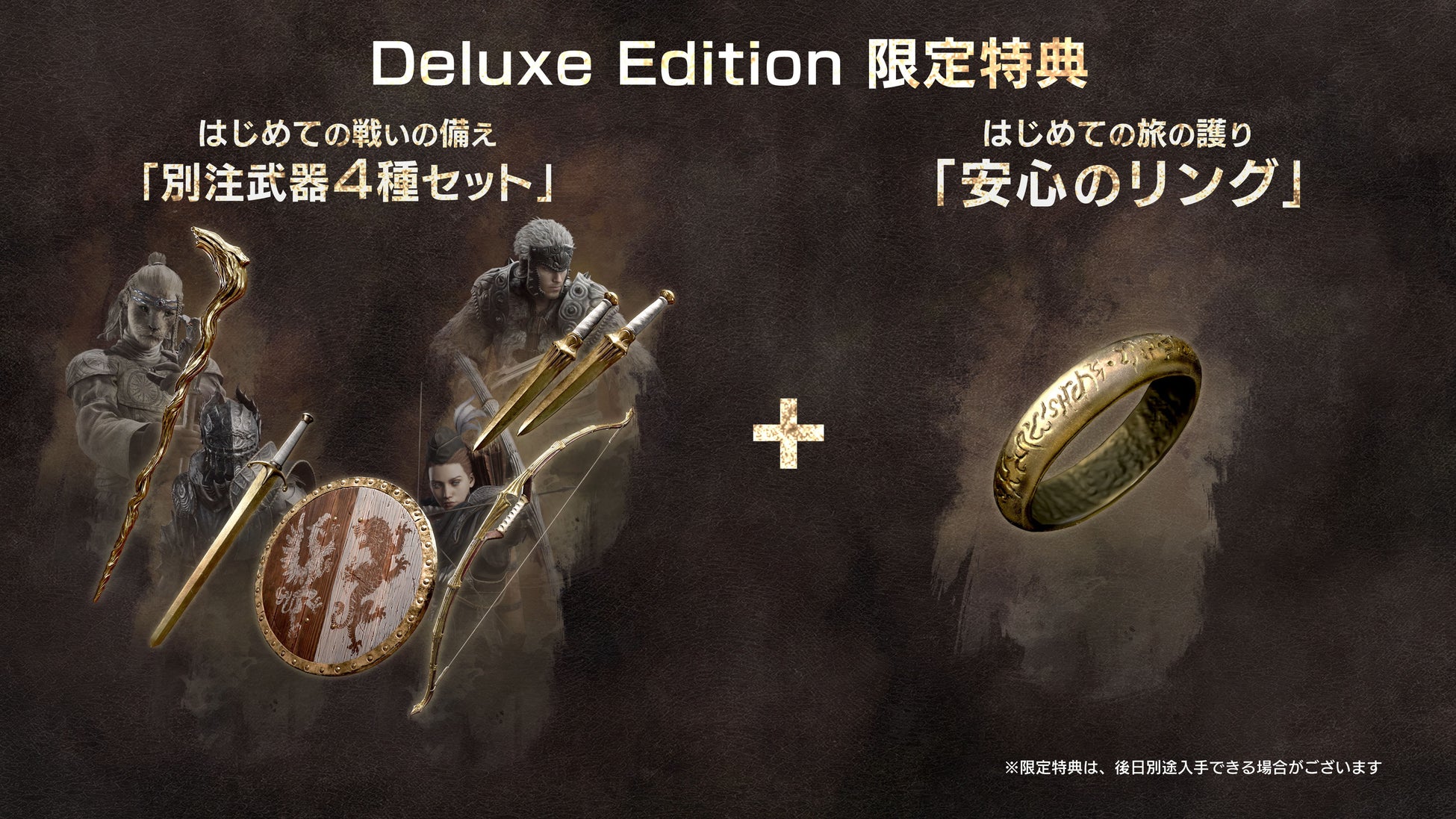 予約特典として、通常版には「別注武器4種セット」が、デラックスエディションにはさらに「安心のリング」がプレゼントされます。