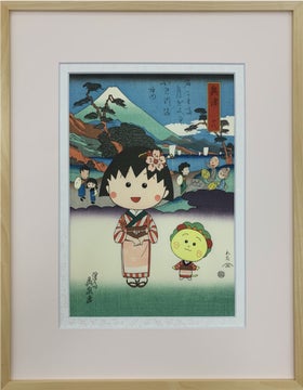 株式会社版三は、伝統的な浮世絵の技術を守りながらも新たな挑戦を続け、ちびまる子ちゃん浮世絵木版画『ちびまる子ちゃんとコジコジ浮世絵 美人東海道の内 興津』を制作しました。