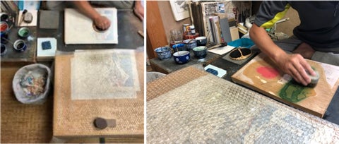 木版画の彫りと摺りは手作業で行われ、和紙には越前生漉奉書が使用されました。