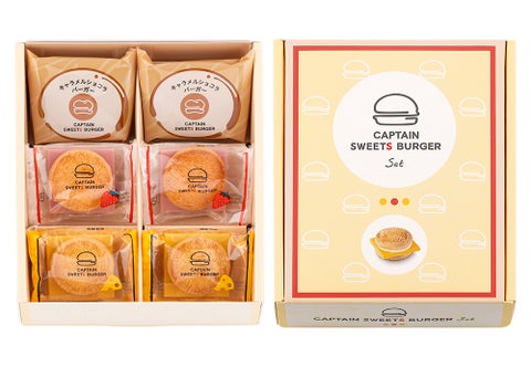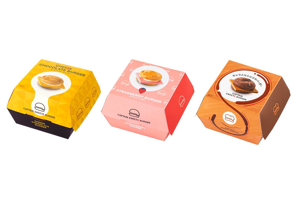 - キャプテンスイーツバーガー、チーズチョコレートバーガー、キャラメルショコラバーガー、ストロベリーバーガー、ビターなソフトクッキー