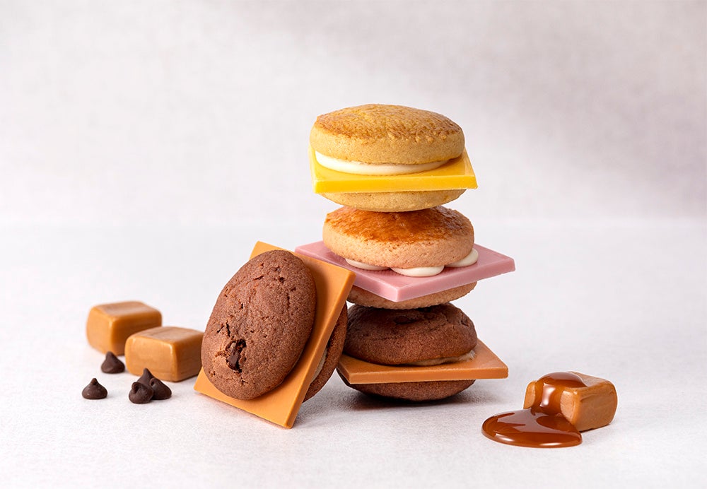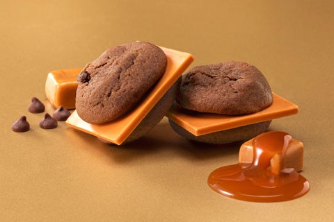 秋冬限定の「キャラメルショコラバーガー」は、ビターなソフトクッキーの間からとろ~りと広がるキャラメルのコクと甘みが特長です。