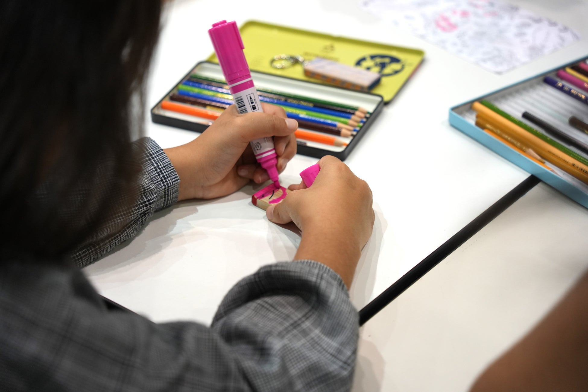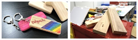 - トーガシは廃材を再利用し、木製キーホルダーのワークショップを実施