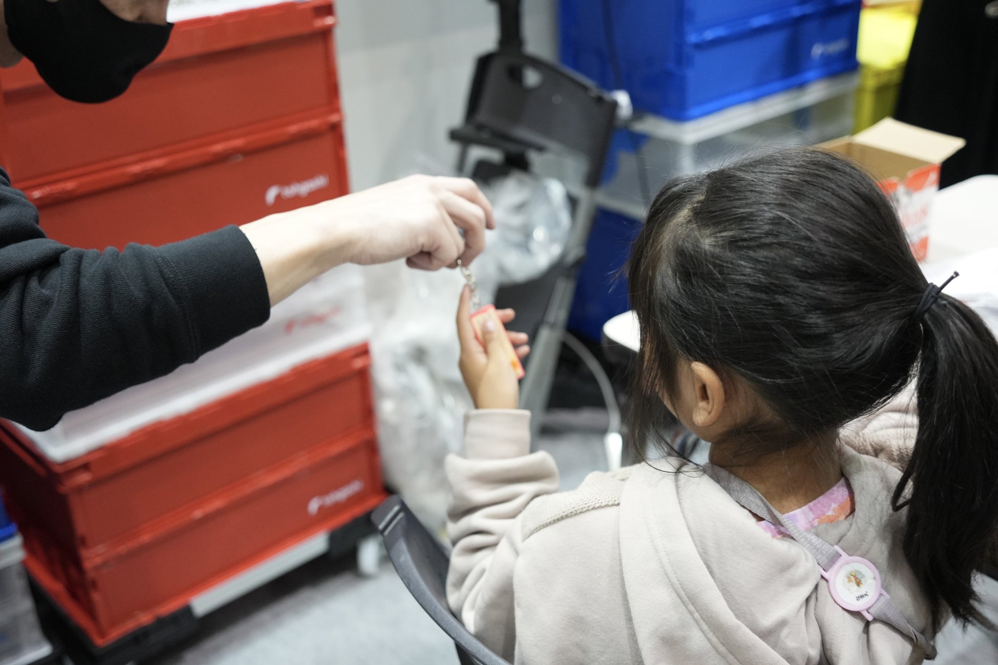 トーガシは、イベントや展示会の会場施工で使われた木材の廃材を再利用し、木製キーホルダーのワークショップを開催しました。