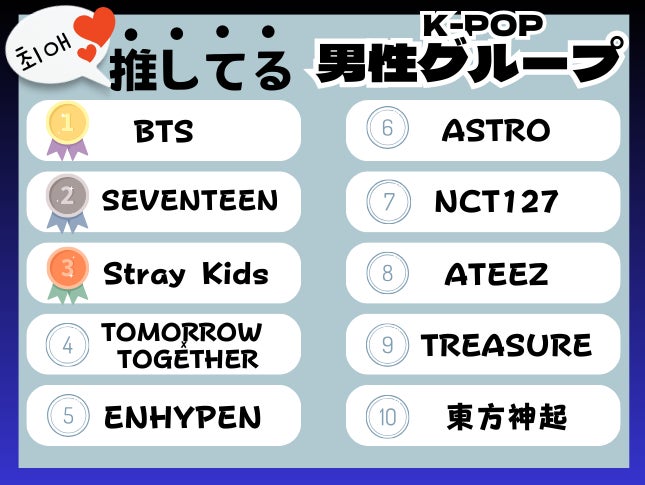 K-POP男性アイドルグループの推しメンに関するアンケート結果が発表されました。