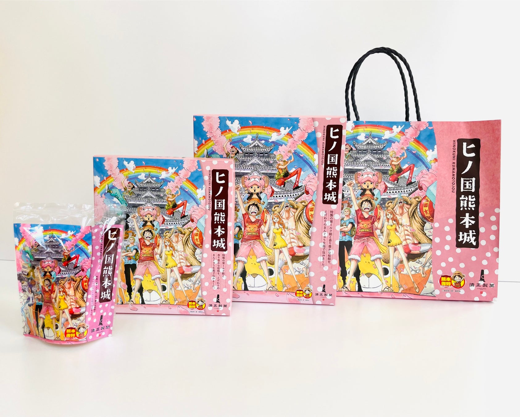 清正製菓は商標登録 【熊本城】を所有していますが、復興プロジェクトのキービジュアルにはまさしく熊本城がそびえ立っていることから「ヒノ国熊本城」と命名し、日本のみならず世界中の「ONE PIECE」ファンの皆様に喜んでいただける商品として、多くの方より手にとっていただきました.