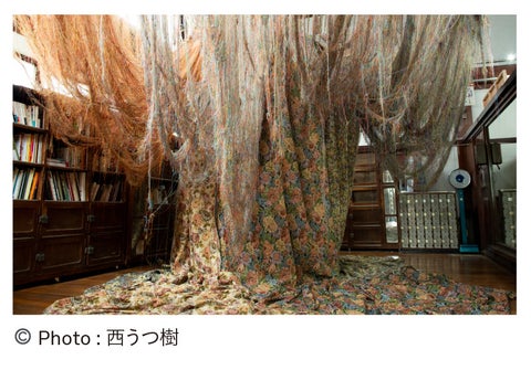 - 常陸風土記の丘では、古代家屋や遺跡を利用した美しいアート作品が展示される