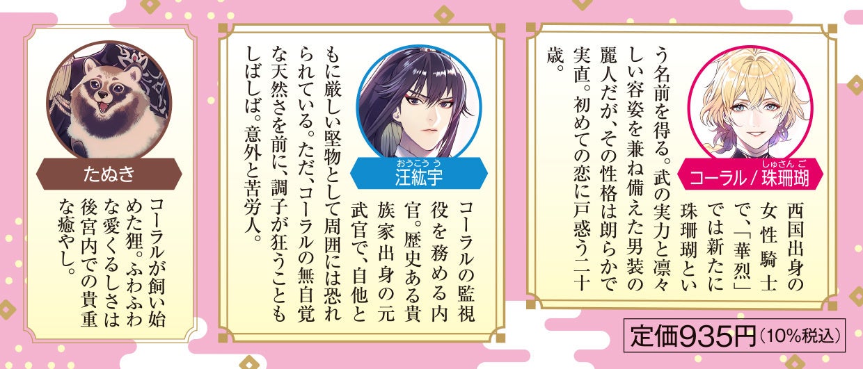- 『彗星乙女後宮伝(上)』は、女性騎士コーラルが後宮で働く物語