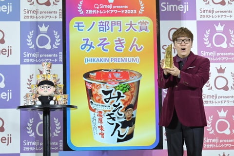 モノ部門の大賞はHIKAKINさんの商品「みそきん」で、柏木さんは彼の多才さを称えました。