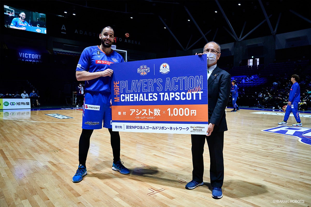 茨城ロボッツでは、賛同企業と共に取り組む地域貢献活動「M-HOPE」の一環として、#11 チェハーレス・タプスコット選手が主導となる”M-HOPE Player’s Action with シェイ”を行っております。