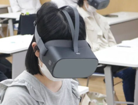 また、学校ではVR特化型職業教育プログラムやAI教育プログラムの開発も行っており、VR教材の開発と実証実験を行なっています。