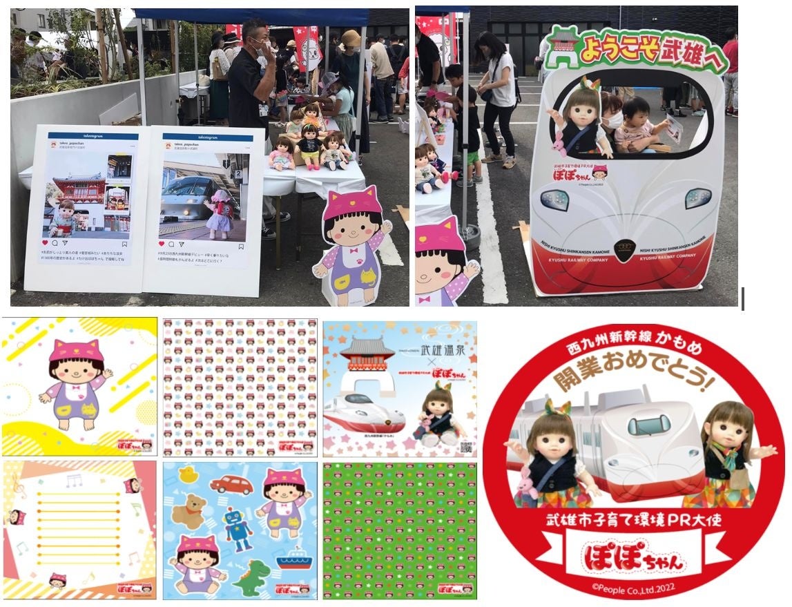 連携活動として、ぽぽちゃんが武雄市子育て環境PR大使に就任し、贈呈式や西九州新幹線開業イベントでのコラボなどを実施しました。