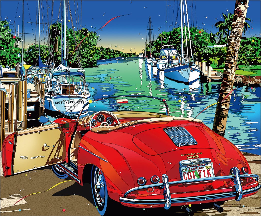 鈴木英人は、80年代からアメリカのリゾート地やクラシックカーをテーマにしたイラストレーターとして活躍しています。