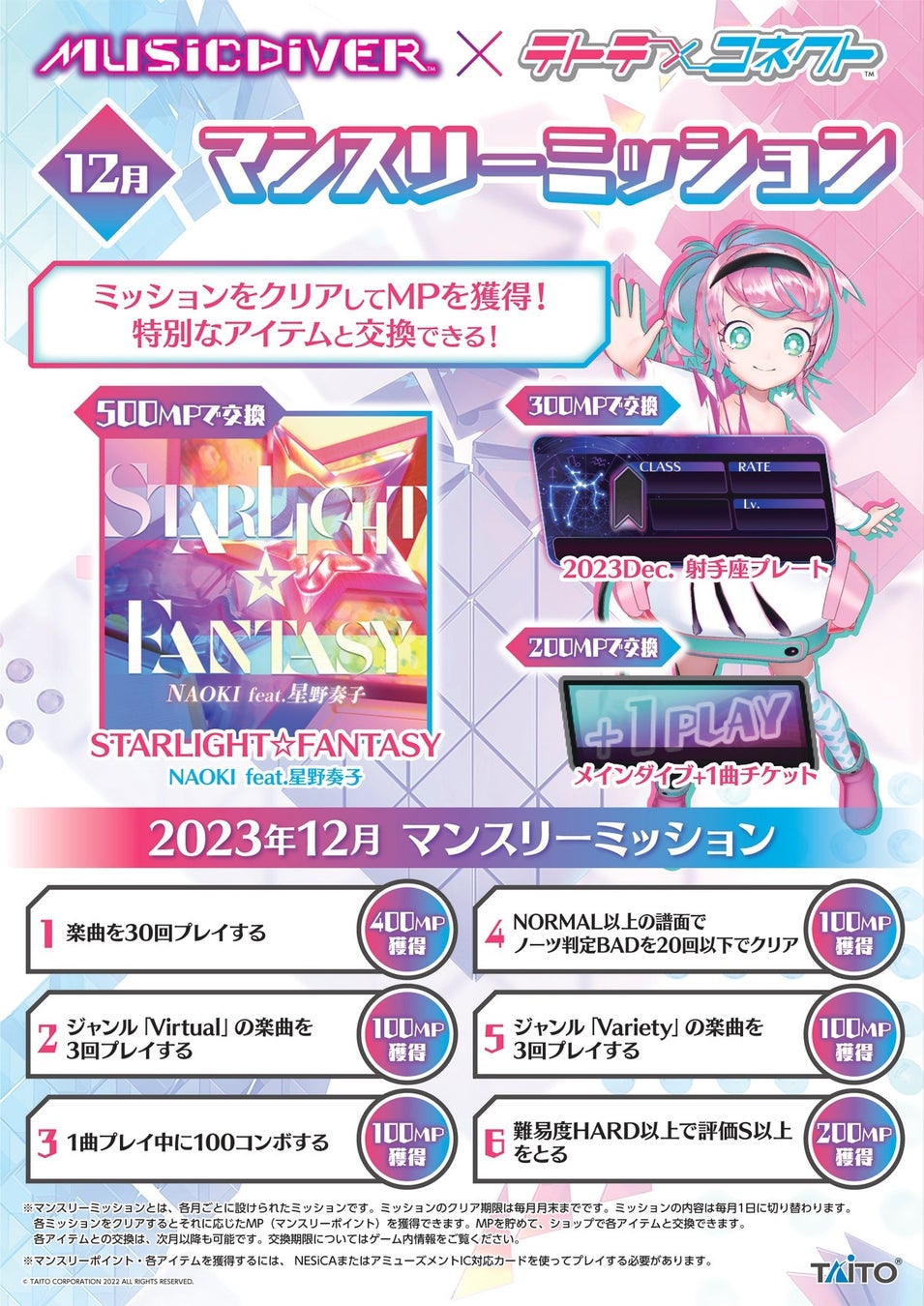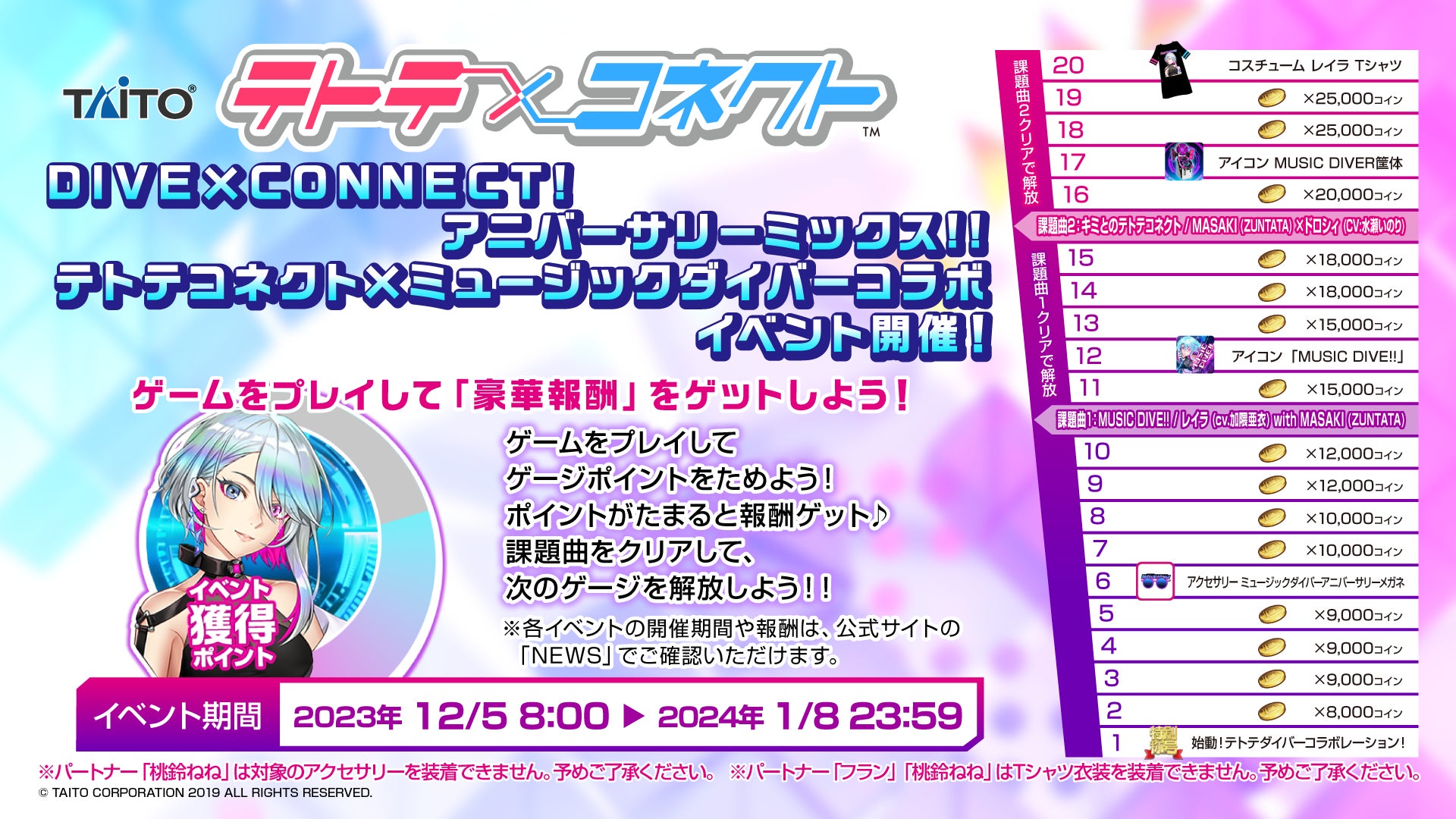 - 12月5日から期間限定で「Collaboration Diving!!【テトテコネクト】」イベント開催