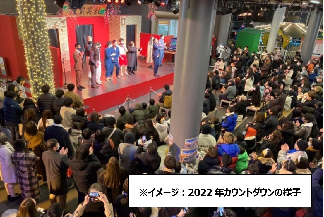- ミニ年越しそばの振る舞いや松竹芸能カウントダウンステージも楽しめる。