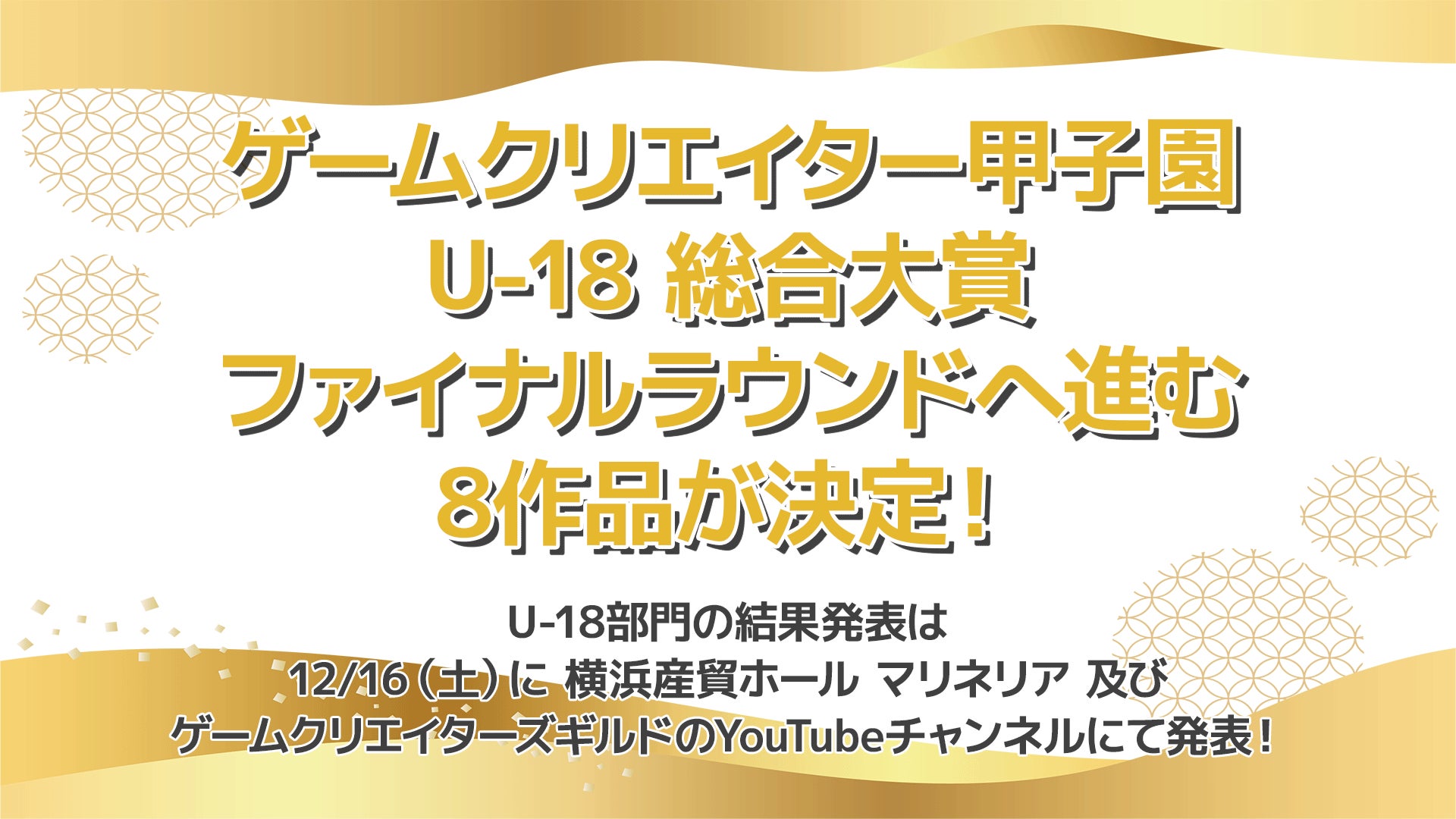 - U-18 総合大賞、ファイナルラウンド、作品、審査、発表授賞式、インディーゲーム、応募、最終締切