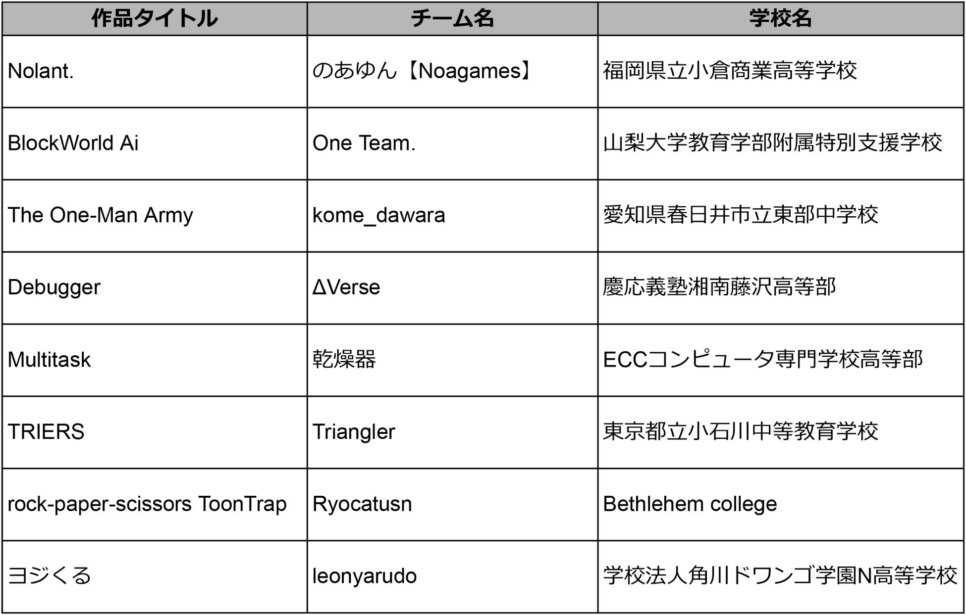 - 審査結果は12/16に発表され、エントリー作品は「みんなのゲームパレード」で試遊可能