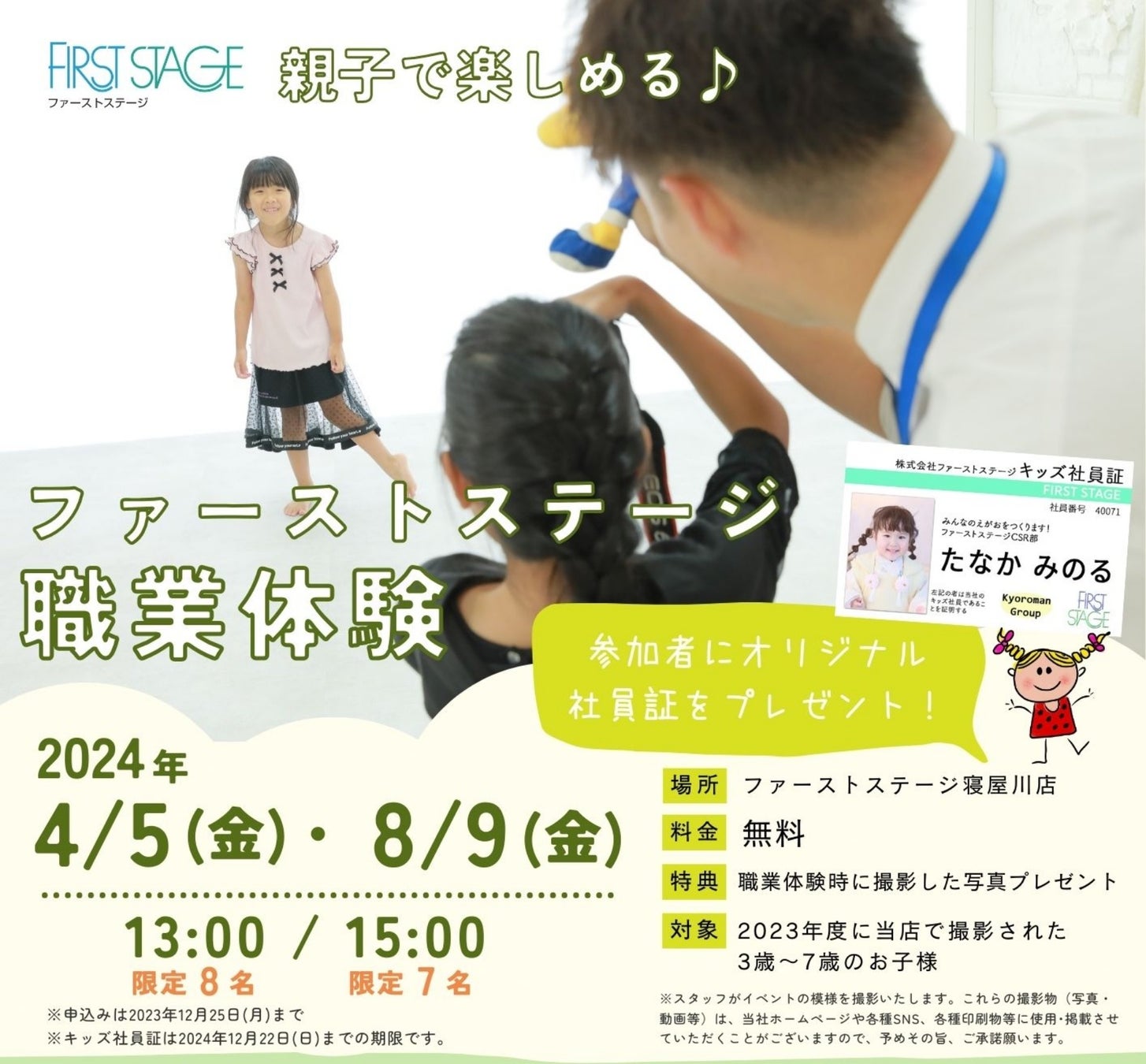 2023年には、3歳から7歳のお子さまを対象に、写真館のお仕事を体験できる職業体験イベントを開催します。