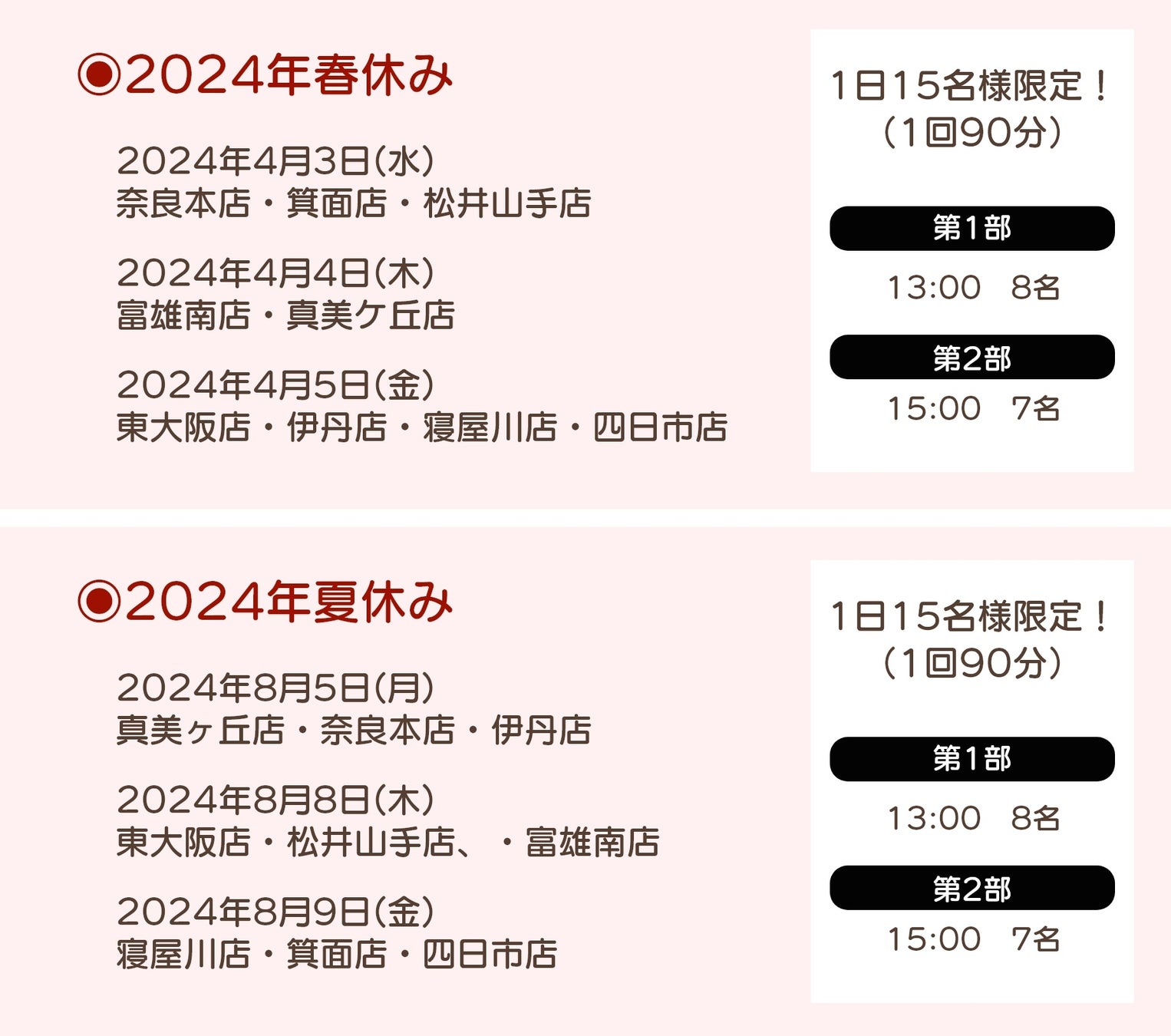 入会費や年会費は無料で、春休みと夏休みに開催されます。